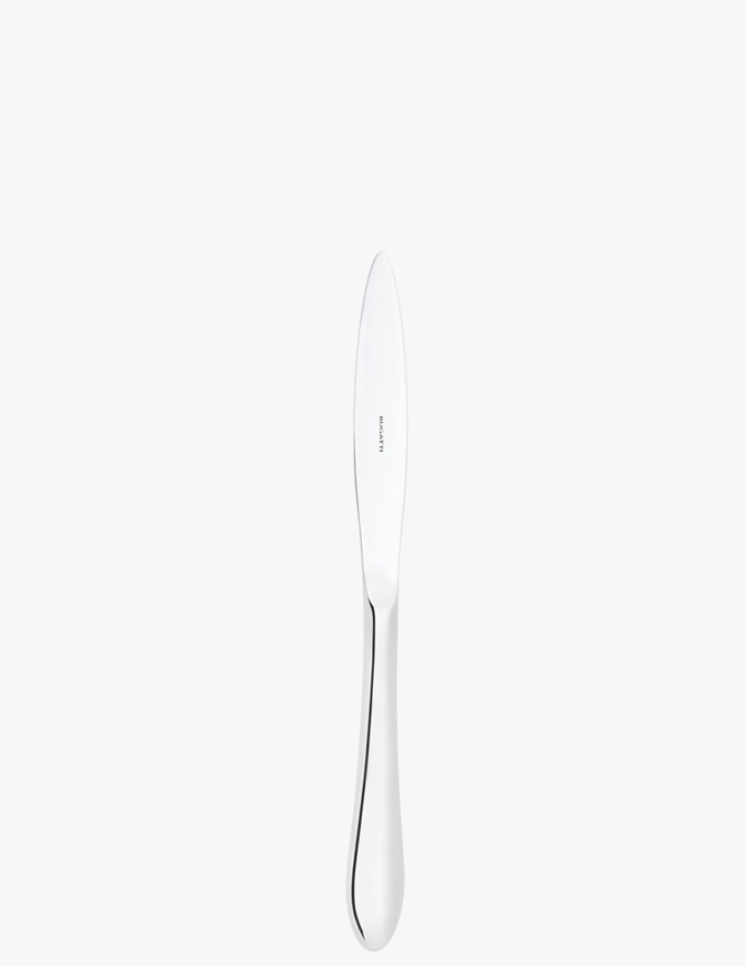 Lovale nasce dall’incontro tra forma e funzione, con proporzioni armoniose che trasmettono naturalezza e solidità. Non è solo una posata: è l’estensione di un gesto di design che arricchisce la tavola con eleganza. Le linee essenziali comunicano equilibrio; il coltello taglia con precisione, il retro rivela cura che completa l’esperienza tattile.