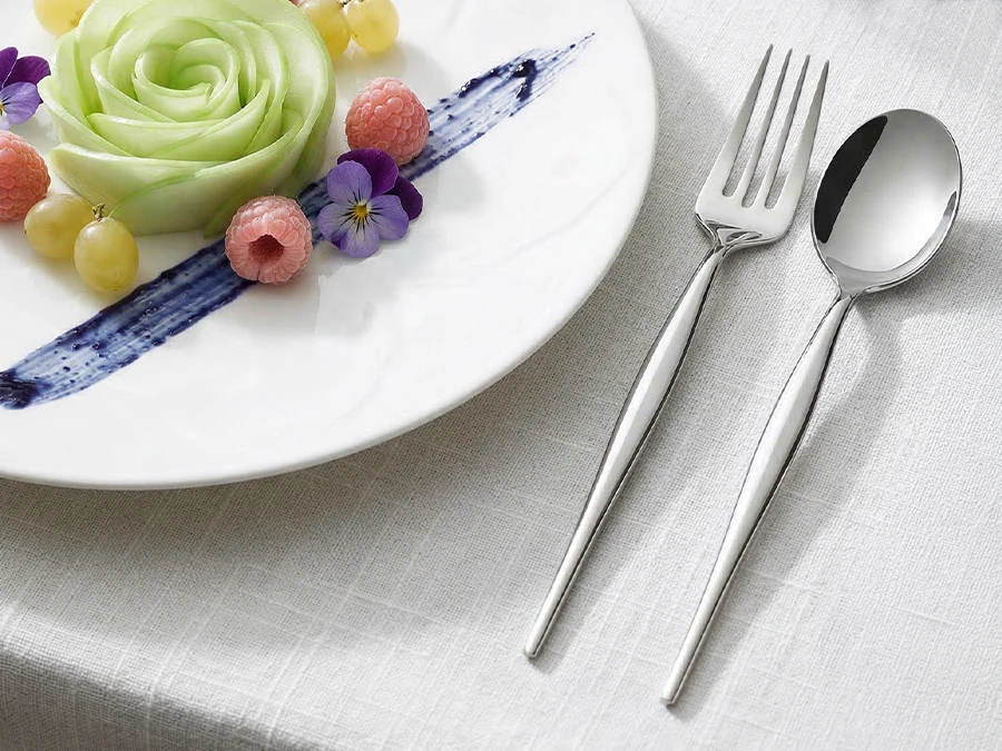 Natura è design ispirato al mondo organico. La sua estetica snella non si limita a disegnare una posata, ma dà vita ad un oggetto dalla personalità indimenticabile. Al tocco l’acciaio rivela comfort ed ergonomia, mentre le superfici evocano l’idea di fili d’erba che accompagnano il gesto e celebrano i sapori.